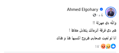 المحلل الرياضى أحمد الجوهرى وعبر حسابه على موقع التواصل الاجتماعي فيسبوك تحدث قائلاً نصا: