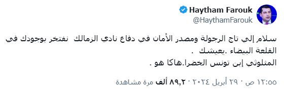 وعبر حسابة على موقع التواصل إكس كتب هيثم فاروق مشيداً ومتغنياً بلاعب الزمالك قائلاً :