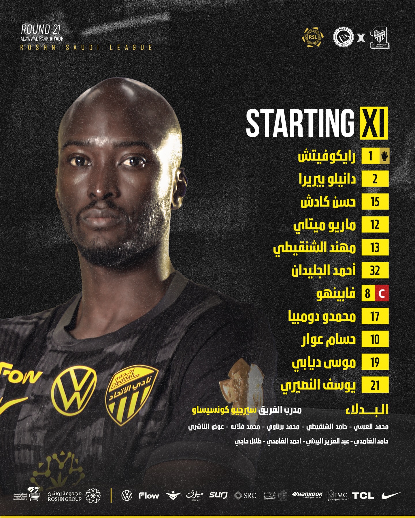 خط الوسط: أحمد الجليدان، فابينهو، محمدو دومبيا، حسام عوار.