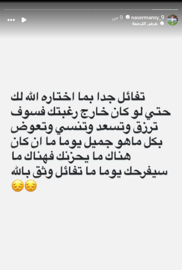 وأضاف اللاعب : وإن كان هناك ما يحزنك، فهناك ما سيفرجك يومًا ما.. تفاءل وثق بالله.