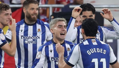 وقبل نهاية الشوط الأول، نجح ميكيل أويارزابال في إعادة التقدم لريال سوسيداد من ركلة جزاء في الوقت بدل الضائع، ليمنح فريقه الأفضلية مع نهاية الـ45 دقيقة الأولى.